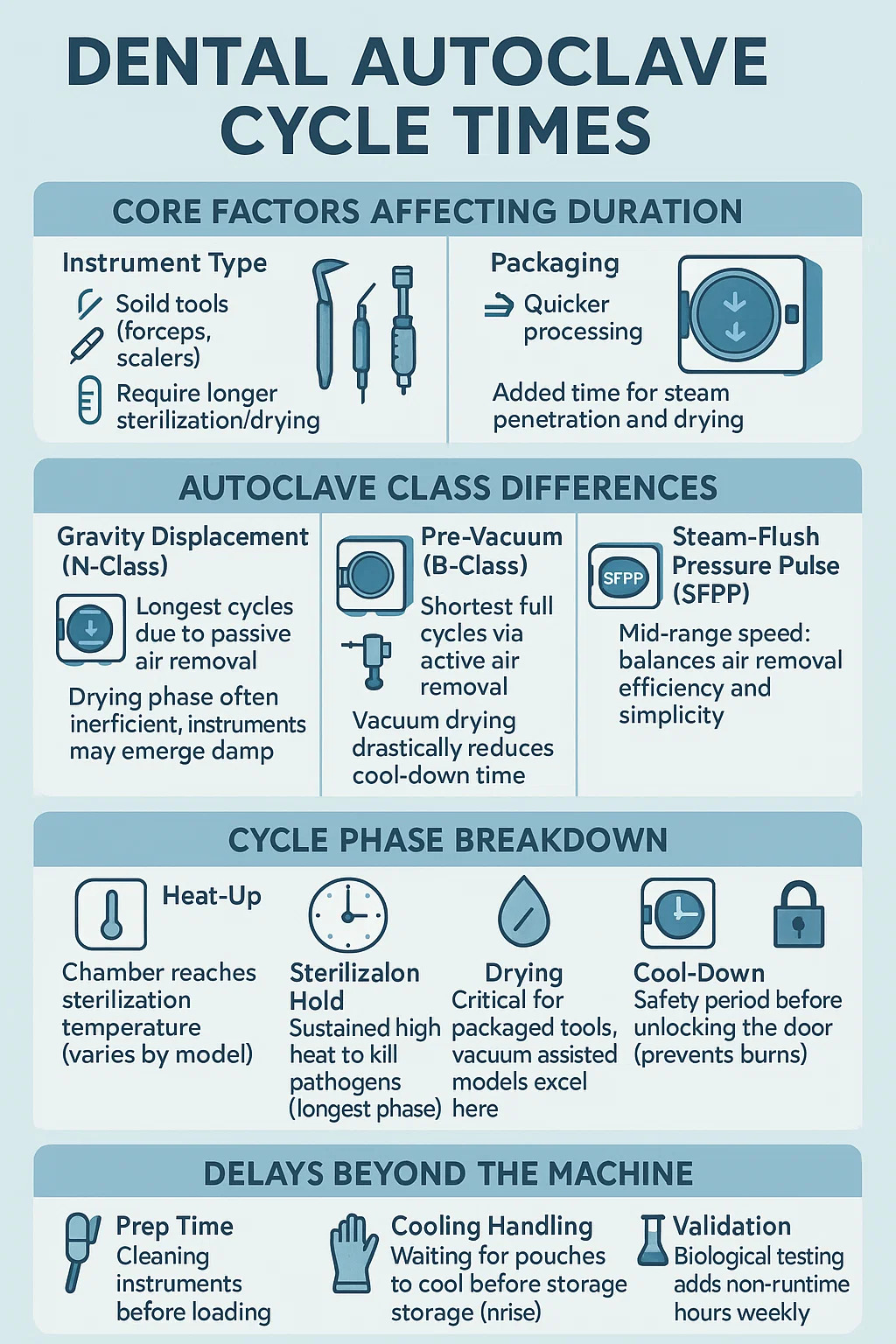 وهنا انهيار الأوتوكلاف الأسنان أوقات الدورة، مع التركيز على العوامل العملية: